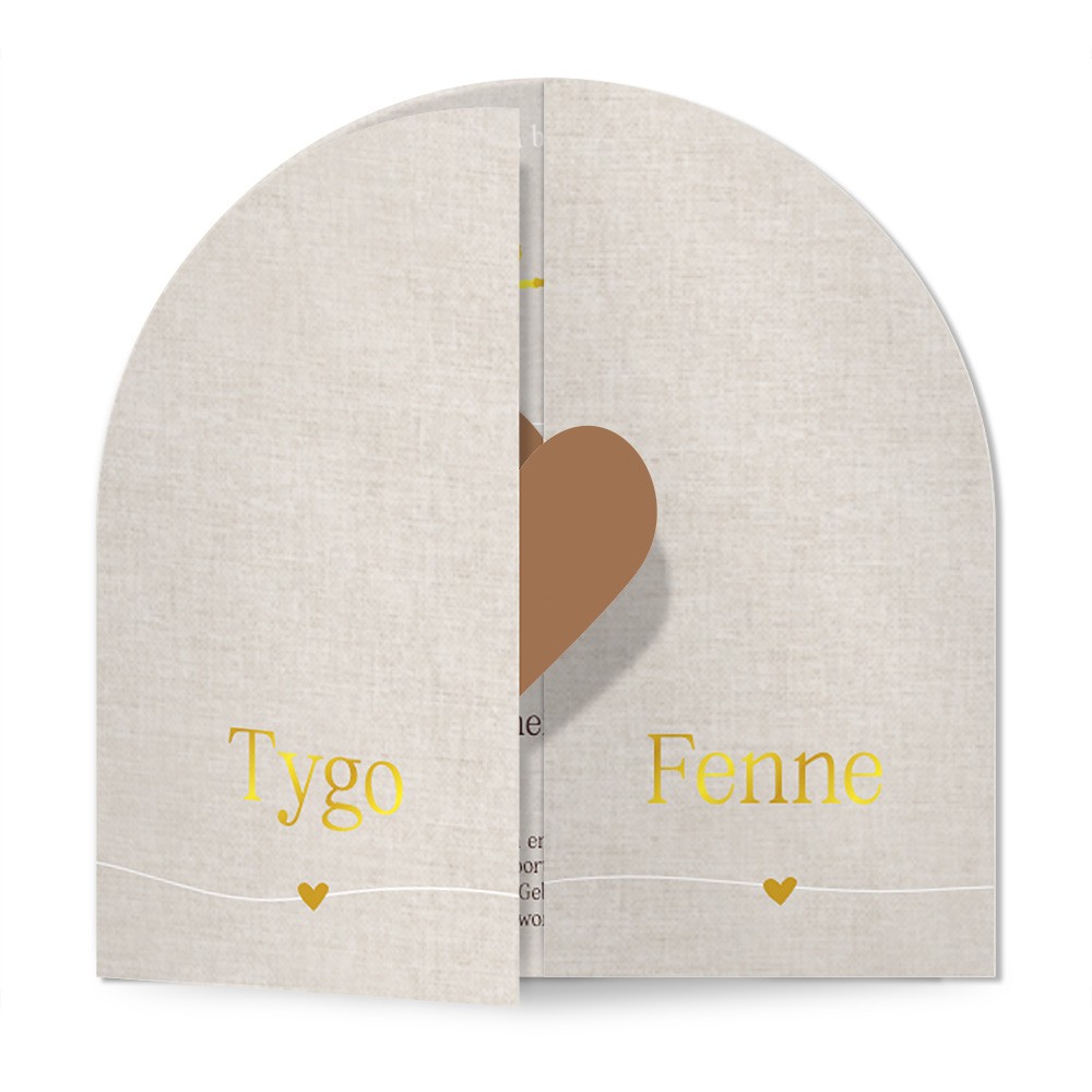Hoe leuk is om jullie tweeling direct voor te stellen met een foto op het geboortekaartje. Je kan elk kaartje voorzien van een eigen foto, bijvoorbeeld op het kaartje zelf of als los labeltje. Tip: je kan meerdere geboortekaartjes klaarzetten in je account. Twijfel je over een foto op je geboortekaartje? Zet dan twee versies van je geboortekaartje klaar, één met een foto van de tweeling en één zonder de foto. Wanneer je kiest voor een vierluik geboortekaartje, kan je elk kindje een eigen foto en een eigen tekst zijde geven. Zo heb je toch 2 kaartjes in een kaartje. Ideaal voor een tweelingkaartje.
