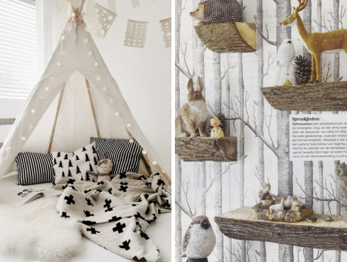 Een tipi hoek op lekker in te loungen of een hele bosdieren wand! Wil je een statement maken in de kinderkamer, dan zijn dit wel hele leuke ideeen!