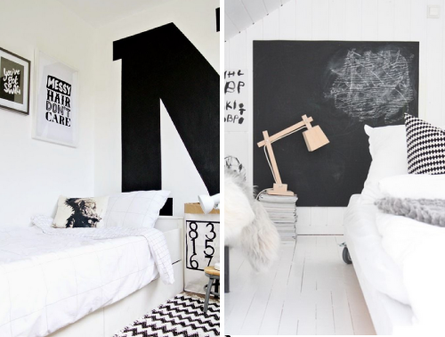 Gewoon groot een eerste letter op de muur. Of een groot krijtbord. Wij vinden het gaaf om zo'n statement te maken in de babykamer (of kinderkamer natuurlijk).