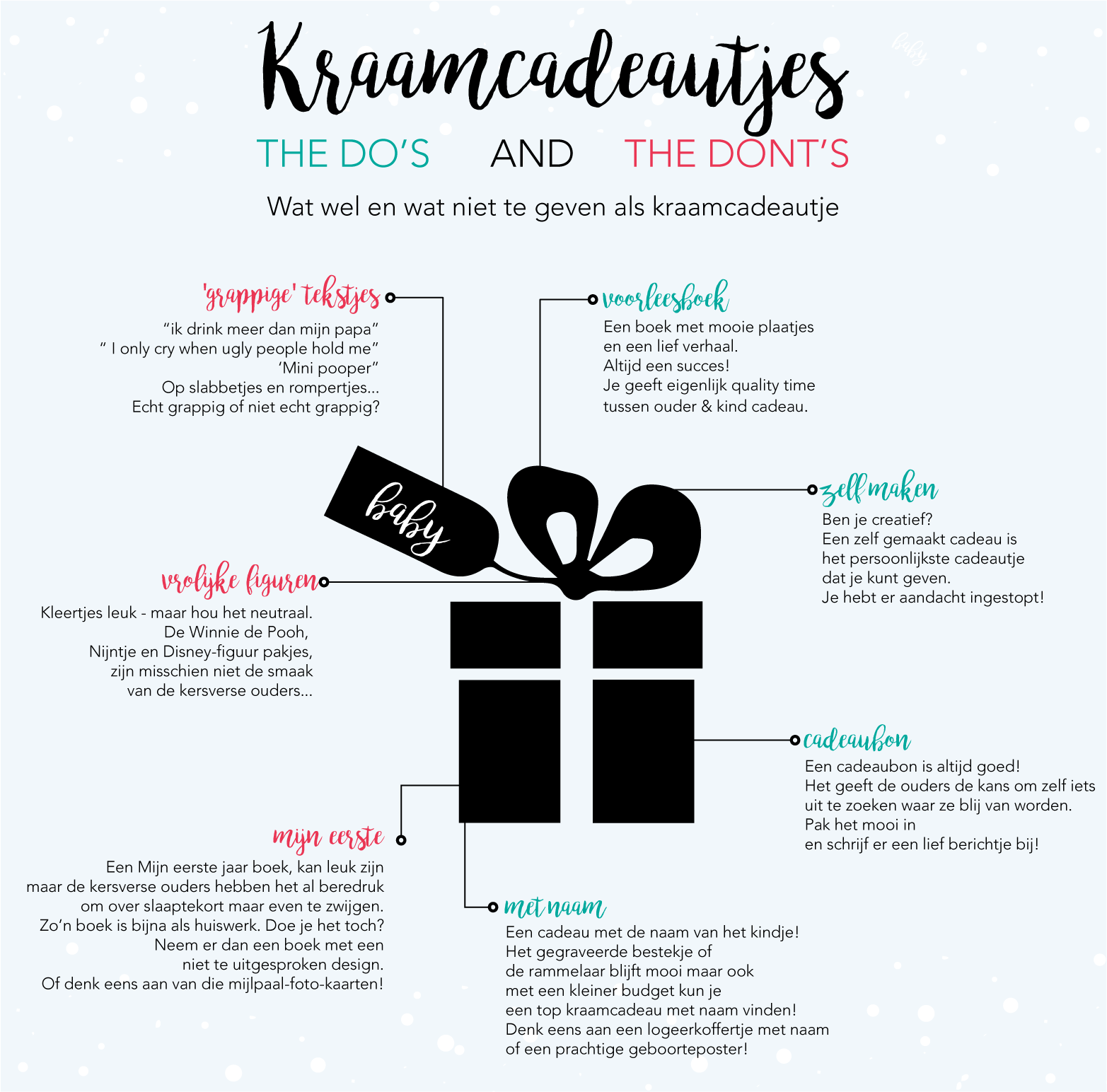 Kraamcadeautjes krijgen kan leuk zijn. Als het een beetje past bij jouw smaak. Anders voel je je misschien verplicht om enthousiast te doen of erger nog, je kindje iets aan te trekken dat je hélémaal niet ziet zitten. Begrijp ons niet verkeerd, we zijn netjes opgevoed; een cadeautje krijgen is altijd leuk maar er is toch wel verschil tussen het ene of het andere presentje. Dat geldt voor het krijgen maar ook als je zelf een cadeautje aan een kersverse ouder gaat geven. Wij zetten onze do's en dont's voor je op een rijtje.