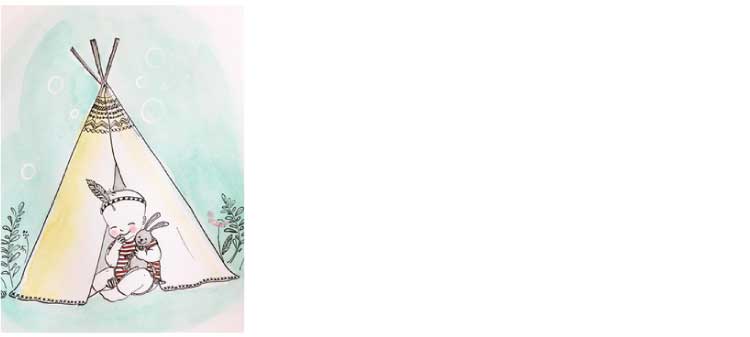 We hebben diverse leuke designers die ook een ontwerp op maat maken. Zoals Gribbeltje, Jeanette of Ellabellaboem bijvoorbeeld. Zo kan je je kaart helemaal naar eigen wens laten tekenen, illustreren en opmaken! Hoe bijzonder is dat. Bijvoorbeeld door Jeanette... Zij kan met acrylverf maar ook een pentekening met watercolor maken. Zoals dit leuke kaartje met een tipi (binnenkort in de collectie!)