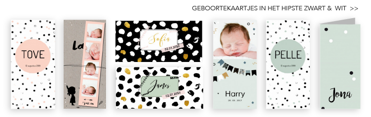 Het valt niet te missen - zwart en wit is in! We zien het overal: bij hippe kinderkleding, stoer speelgoed en in de mooiste kinderkamerstyling. En het is verre van saai of zwaar, juist in combinatie met mooie zachte pastelkleuren of heerlijk frisse tinten is zwart en wit de perfecte basis. Ook bij geboortekaartjes. Met strakke prints of lieve lijntekeningen. En heb je het idee dat zwart op een geboortekaartje niet kan - dan zeggen we: think again! We hebben een prachtige collectie kaartjes in veel verschillende formaten en stijlen en dus ook in het zwart-wit. Stijlvol en stoer!
